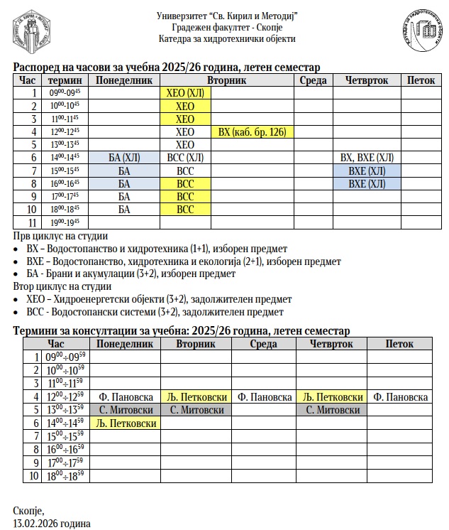 Универзитет „Св. Кирил и Методиј“, Градежен факултет, Оддел за хидротехника и организација на градба